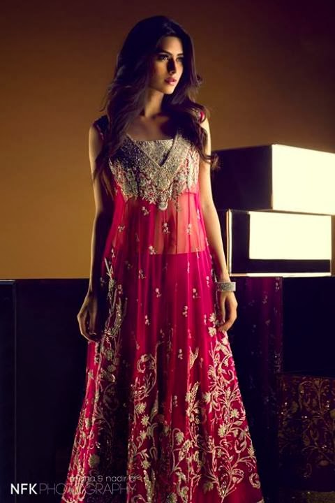 Sania Maskatiya Bridal Shoot for Paparazzi Magazine 2013 featuring model Huma. The photography for this bridal shoot done by Nadir firoz khan. Maha burney did the styling. The model's makeup and hair done by Raana khan which makes the model huma looks more attractive. As you see all the dresses are unique and elegant in design. The colours are bright focusing the theme of a bride.